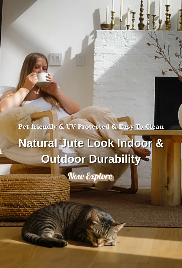 Yes! Our polypropylene jute-look rugs are designed to bring warmth and texture to both indoor and outdoor spaces. They’re UV-protected and fade-resistant, making them perfect for patios, balconies, and living rooms alike.