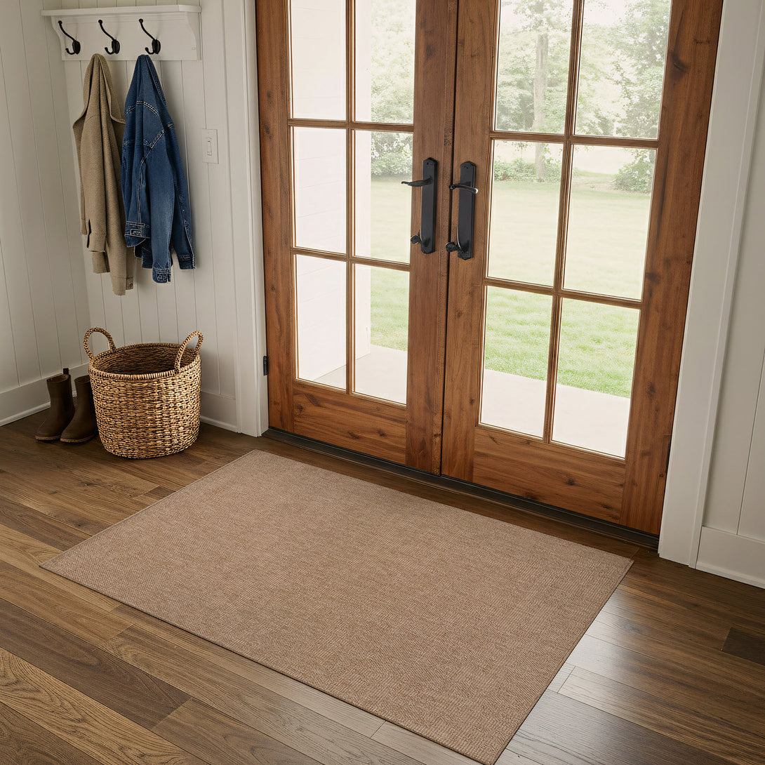 Polypropylene jute-look that handles real life—no complicated care routine. Unroll, style, and keep it fresh with quick spot cleaning.