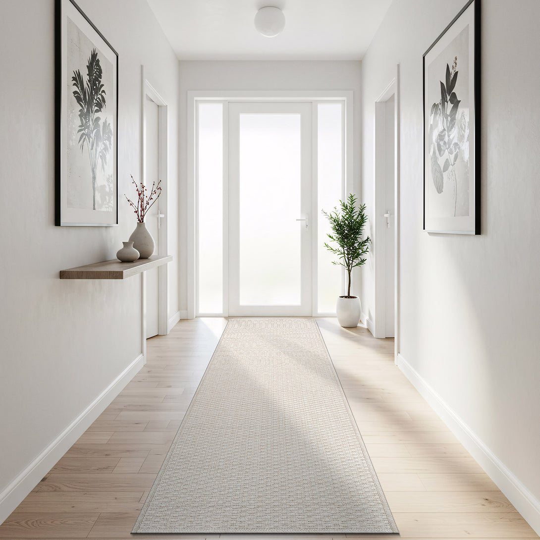 Polypropylene jute-look that handles real life—no complicated care routine. Unroll, style, and keep it fresh with quick spot cleaning.