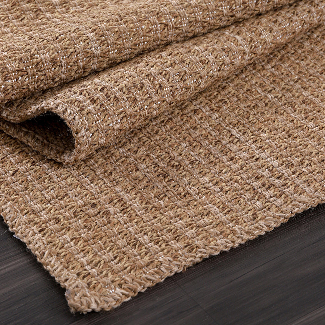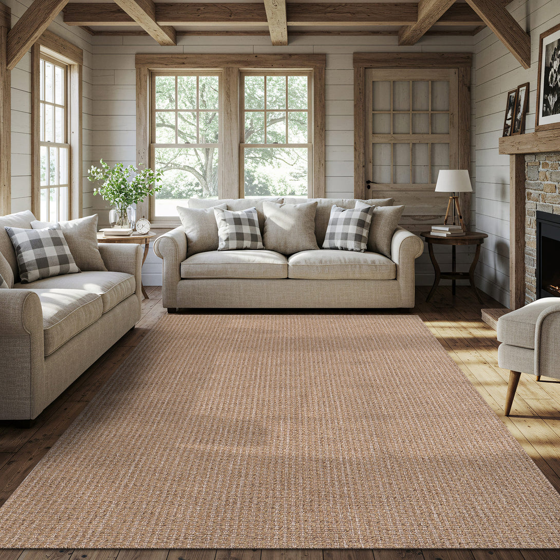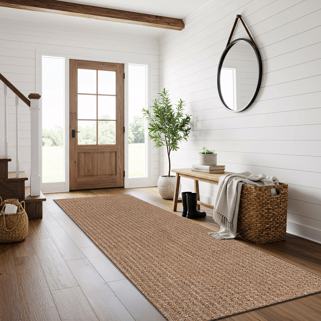 Polypropylene jute-look that handles real life—no complicated care routine. Unroll, style, and keep it fresh with quick spot cleaning.